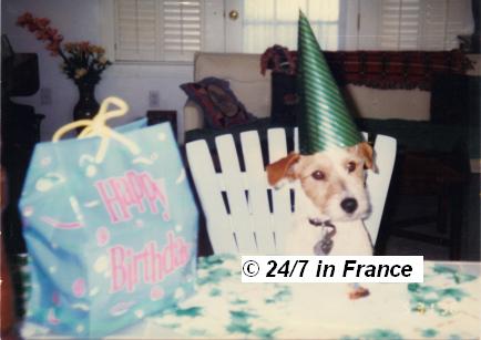Since my blog is one year old today, I thought I would post the one-year-old birthday celebration photo of my dog, Bullet!